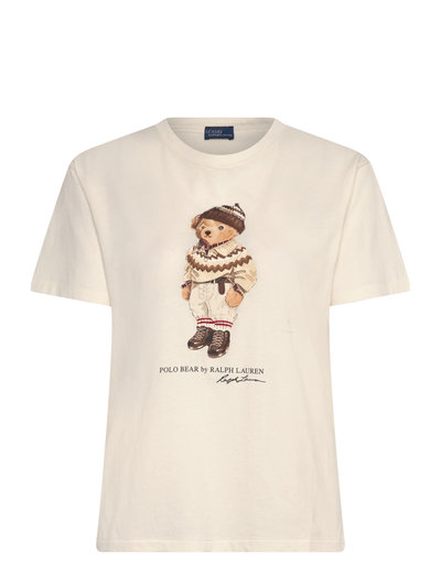 Ein klassisches T-Shirt mit Rundhalsausschnitt erhält durch einen charakteristischen Bärengrafik einen verspielten Touch. Dieses weiche T-Shirt aus Baumwolljersey bietet alltäglichen Komfort und einen Hauch von Verspieltheit.