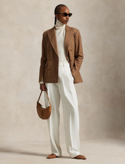 Dieser zweireihige Blazer ist aus einem Woll-Baumwoll-Gemisch mit klassischem Fischgratmuster gefertigt. Die gerade Passform wird durch ein fallendes Revers und einen luxuriösen Unterkragen aus Lammsuede ergänzt. Eine zeitlose Ergänzung für jede Garderobe.
