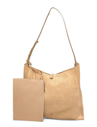 Diese Messenger Bag aus weichem Wildleder bietet ein luxuriöses Gefühl und eine entspannte Silhouette. Sie verfügt über einen verstellbaren Schultergurt für bequemes Tragen und eine abnehmbare Tasche für zusätzliche Vielseitigkeit.