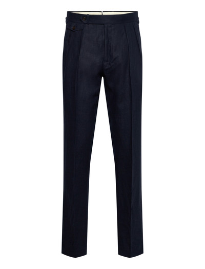 Diese Hose aus leichtem Leinen bietet eine entspannte und doch raffinierte Silhouette. Das Design zeichnet sich durch eine klassische, plissierte Vorderseite aus, die den Fall verbessert und zusätzliche Bewegungsfreiheit bietet. Eine vielseitige Ergänzung für jede Garderobe, die sich mühelos mit lässiger und formeller Kleidung kombinieren lässt.