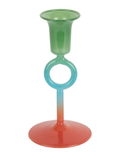 The most colorful small Anillo Vivo candlestick in our summer collection. In striking combinations. This candlestick is 15 centimeters high and has a maximum diameter of 7.5 centimeters. Made of glass.