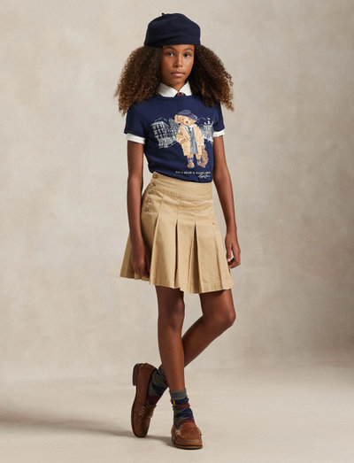 Dieses T-Shirt aus weichem Baumwolljersey zeigt das ikonische Maskottchen in einem College-Look. Das Design zeigt den beliebten Bären, der für das Campusleben bereit ist, komplett mit einem charakteristischen Outfit. Eine bequeme und stilvolle Wahl für den Alltag.