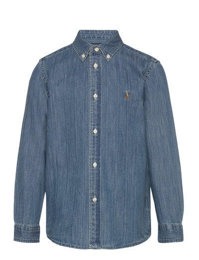 Dieses langärmlige Hemd aus weichem Chambray bietet einen bequemen und klassischen Look. Es verfügt über einen Button-Down-Kragen und ein charakteristisches, aufgesticktes Pony auf der Brust, was für einen Hauch von dezentem Branding sorgt.