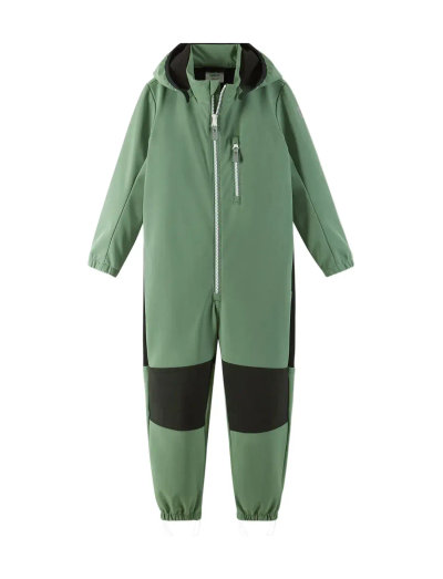 Dieser Softshell-Overall ist auf Komfort und Flexibilität ausgelegt und lässt sich leicht anziehen. Dieser Einteiler besteht aus einem Material mit recycelten Fasern, das Spritzwasser und Wind abhält und gleichzeitig atmungsaktiv bleibt. Das Fleece auf der Rückseite hält Kinder warm und die Oberfläche ist wasserabweisend, wodurch sie leicht zu reinigen ist. Strapazierfähiges, wasserdichtes Gewebe verstärkt wichtige Bereiche, während elastische Bündchen und abnehmbare Silikon-Fußschlaufen den Schutz erhöhen. Er verfügt zudem über eine sichere, abnehmbare Kapuze und eine Reissverschlusstasche.