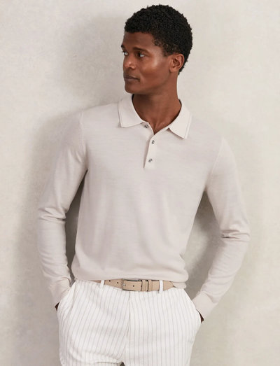 Werten Sie Ihren Alltagslook mit diesem langärmeligen Poloshirt aus luxuriöser Merinowolle auf. Das Design zeichnet sich durch einen eleganten Polokragen mit Knopfleiste, lange Ärmel sowie gerippte Abschlüsse an Saum und Bündchen aus. Dezente Markendetails an den Knöpfen runden den Look ab.