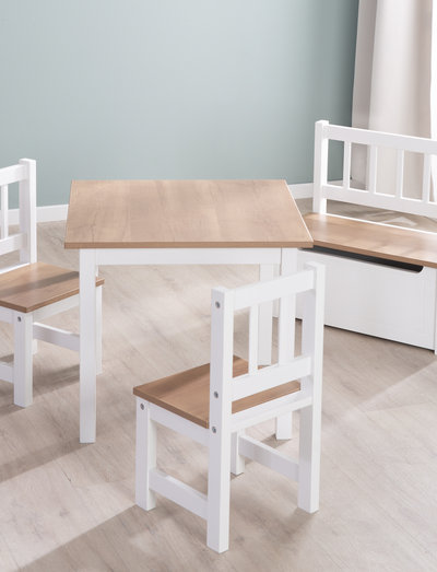 Discover our table and chairs set for children, perfectly tailored to their needs and size. Carefully crafted from durable materials, this furniture is designed to provide optimal comfort and safety for your little ones. With its modern design, it will add a touch of charm to any child's room or play area. The set includes a table and two ergonomic chairs, offering a comfortable space for children to play, draw, and engage in their favorite activities. Easy to assemble and disassemble, our children's table and chairs set is convenient to use and can be easily stored when not in use. Additionally, the smooth surface of the table makes cleaning a breeze, ensuring perfect hygiene. Looking to make your child's room even more organized? The storage bench (ref: 450050HWE) pairs wonderfully with this set, adding a decorative touch to your children's play space. Provide your children with a dedicated area where they can explore, create, and thrive. Our table and 2 chairs set is an ideal choice for parents who prioritize the quality and comfort of their children. Transform their environment into a place where imagination comes to life!
