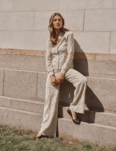 Blumenspitze wertet diese Hose uf und sorgt für e zarti und raffinierti Ästhetik. Das Straight-Leg-Design sorgt für e schmeichelhafti Silhouette und macht sie zu einer vielsytige Ergänzig für jede Garderobe. Abgrundet mit eme gwällte Saum.