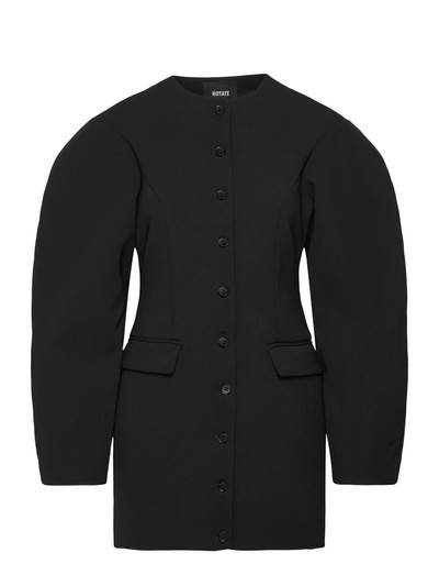 Dieses Minikleid besticht durch seine markanten Schultern und die taillierte Silhouette und setzt ein klares Statement. Das Design verfügt über eine Knopfleiste vorne und dezente Vordertaschen, die eine moderne Variante einer klassischen Form darstellen. Perfekt, um einen starken Auftritt hinzulegen.