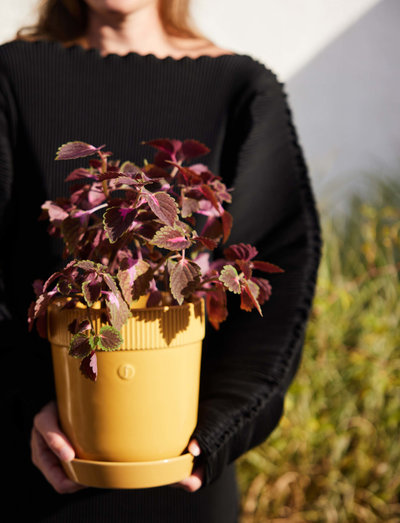 Elise pot with plate does everything right. It combines the design of colour, shape and details with practical additions like drainage holes and a plate which reaches higher up. Elise pot has a soft rounded shape with simple straight lines and is made of classic stoneware. The pot is decorated with an emblem and Sagaform’s characteristic stripe. Elise has been glazed in three beautiful close to nature colours. A pot which will be a warm addition to every home. Available in two sizes.