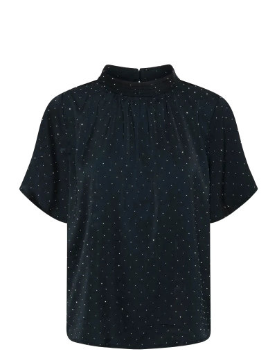 Dieses Top mit raffiniertem, hohem Ausschnitt verleiht jedem Ensemble eine elegante Note. Die kurzen Ärmel sorgen für ein luftiges Tragegefühl und machen es ideal für wärmeres Wetter oder zum Unterziehen unter Jacken.