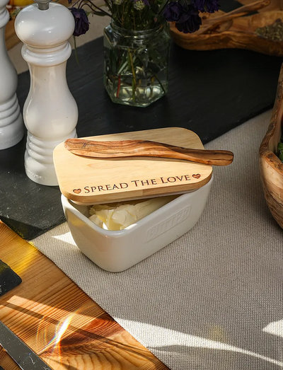 Spread love and warmth at your table with our White Spread The Love Oak and Ceramic Butter Dish. Featuring a heartfelt message, this butter dish offers a delightful and eco-friendly alternative to traditional single-use plastic containers. Combining style with positivity and functionality, it not only enhances your table setting but also serves as an endearing and unique gift option to spread love on any occasion.