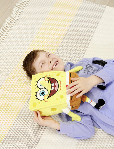 0+ JahreWho lives in a pineapple in the sea? It's SpongeBob SquarePants, of course. The ever-happy mushroom is now available as a stuffed animal. Made from cuddly soft plush, it's ideal for cuddling and hugging. The stuffed animal has a filling made of 100% recycled material. SpongeBob SquarePants from Simba Toys is 35 cm tall and children can take him everywhere. Suitable for children already from the first months of life.
