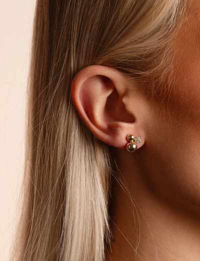 Diese Ohrstecker zeichnen sich durch ein einzigartiges Design mit drei miteinander verbundenen Perlen aus. Eine Perle ist mit schimmernden Steinen verziert, die Ihrem Look einen Hauch von Glanz verleihen.