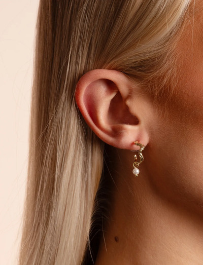 Diese wellenförmigen Halbcreolen mit dezenter Struktur sorgen für ein lebendiges Finish. Ein baumelndes Perldetail verleiht einen weichen, eleganten Touch.