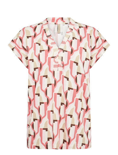 Dieses T-Shirt besticht durch einen geometrischen Retro-Print, der einen einzigartigen Look kreiert. Der V-Ausschnitt und die kurzen Ärmel unterstreichen den lässigen Stil. Gefertigt aus einer Mischung aus Bio-Baumwolle und Viskose bietet es sowohl Komfort als auch Stil und lässt sich leicht mit Jeans oder einem Rock kombinieren.