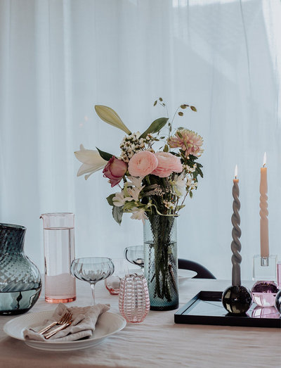 The Harlequin carafe is mouth blown in Europe where old and traditional techniques are applied. Due to the mouth blown technique each glass is unique. The Harlequin Carafe has the classic and elegant harlequin pattern. The Carafe is ideal to create a beau