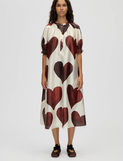 Dieses Midikleid mit einem markanten Print bietet eine entspannte Passform. Es ist mit kurzen Puffärmeln, Seitentaschen und einer Knopfleiste vorne ausgestattet.