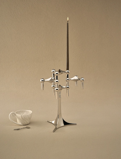 The stoff nagel stand is another rediscovering from the 1960s. it can be used on its own or with a number of stoff nagel candle holders and candles to create your own sculptural and extravagant candelabra. the stoff nagel stand invites you to be even more creative and to personalise your own sculpture by placing the candle holders and bowls in different ways on top of your stand.
