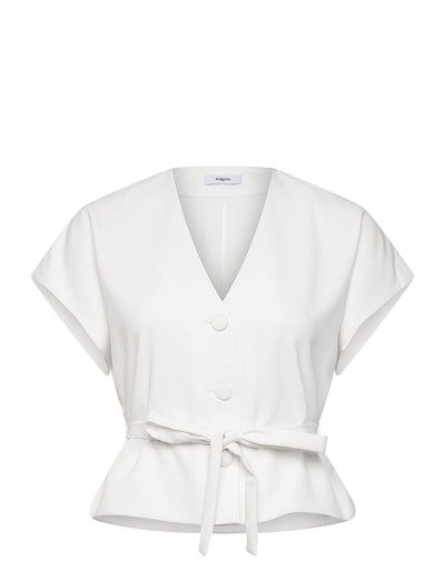 Dieses Oberteil mit V-Ausschnitt und kurzen Ärmeln bietet eine elegante Silhouette. Es ist mit einer Knopfleiste vorne und einem Bindegürtel in der Taille versehen, was eine schmeichelhafte und verstellbare Passform ergibt.
