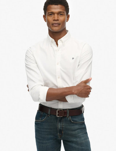Dieses vielseitige Langarmhemd bietet eine entspannte Passform für ganztägigen Tragekomfort. Es verfügt über einen Button-down-Kragen und eine Kellerfalte im Rücken und ist mit einem dezenten Logo auf der Brust versehen, das einen Hauch von Understatement verleiht. Dieses Kleidungsstück ist ideal, um raffinierte, schlichte Looks zu kreieren.