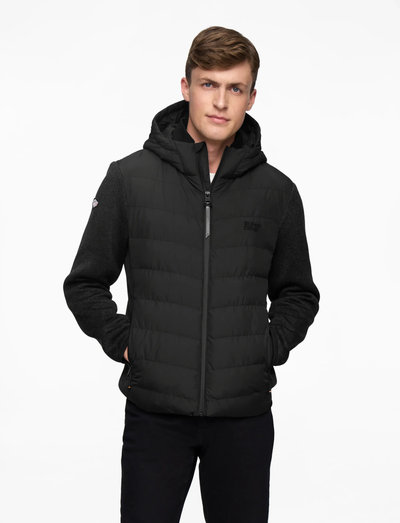 Diese Hybridjacke mit leichter Wattierung an Vorderseite und Kapuze bietet Wärme und Vielseitigkeit. Der schmale Schnitt sorgt für eine taillierte Silhouette, während Jerseyärmel und Rückenteil für Komfort und Flexibilität sorgen. Abgerundet wird sie durch elastische Bündchen, einen Reissverschluss und mehrere Taschen für mehr Funktionalität.