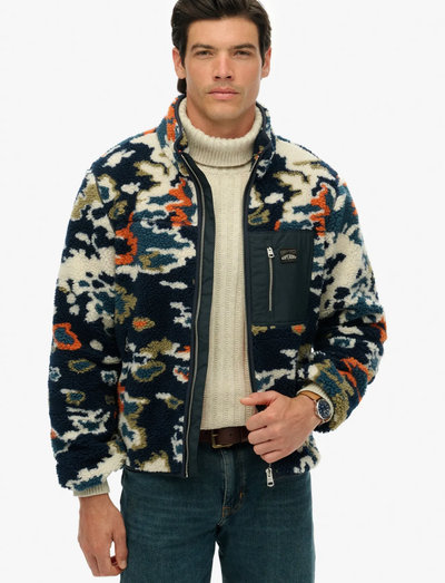 Diese Fleecejacke bietet Wärme und einen unverwechselbaren Stil mit einem durchgehenden Reissverschluss und einem einzigartigen Printdesign. Sie verfügt über eine Brusttasche mit Reissverschluss zur sicheren Aufbewahrung wichtiger Dinge und zwei zusätzliche Reissverschlusstaschen in der Taille für zusätzlichen Komfort.