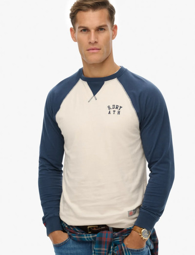 Dieses Oberteil vereint klassischen Stil und Komfort mit gesticktem Text auf der Brust und Raglanärmeln. Der kastenförmige Schnitt sorgt für eine entspannte Silhouette, perfekt für uneingeschränkte Bewegungsfreiheit. Abgerundet wird es durch einen Rundhalsausschnitt mit Rippabschlüssen und Kreuzstichdetails.