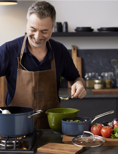 Casserole made from cast aluminium to ensure that heat is retained and distributed evenly and efficiently across the base and sides. The casserole has a two-layer ceramic non-stick coating, is suitable for all heat sources, is oven-safe up to 220 C and can be washed in the dishwasher. Can be used with all types of utensils, comes with a glass lid and can hold 2.1L.