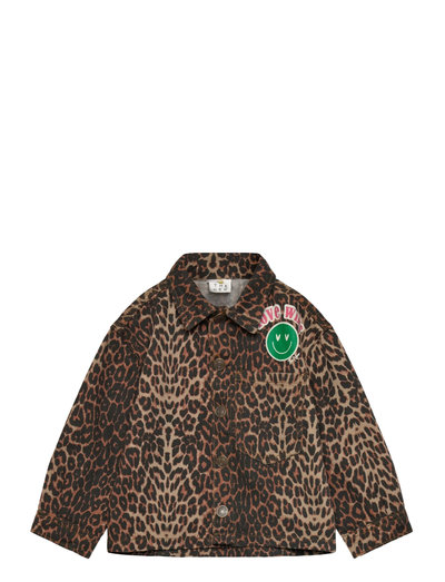 This cool and modern jacket from THE NEW is adorned with a trendy leopard print, adding a stylish and bold touch. The jacket features a classic shirt collar, long sleeves, and front button closure. It is embellished with the text "Love Wins" and a smiling green emoji, giving it a fun and personal flair. On the back, the same print is enlarged for added impact. Perfect for adding edge and style to any outfit, whether for everyday wear or special occasions.- Oversized fit- Leopard print - Shirt collar - Long sleeves - Front button closure - Colorful patch with "Love Wins" and emoji