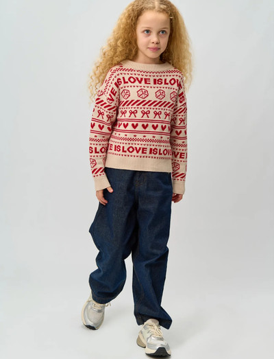 Embrace both warmth and style with this beautiful jacquard pullover from THE NEW. The knit comes in an elegant cream shade and is adorned with unique red details, creating a playful and eye-catching design. Featuring a stunning mix of patterns dice, bows, stripes, hearts, and checks along with the inspiring text