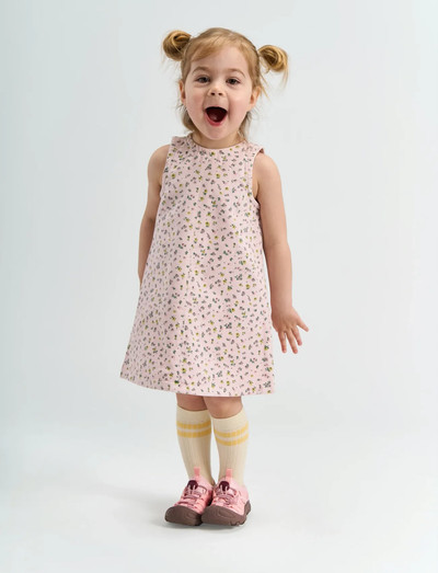 This adorable toddler dress brings everyday charm and comfort to warm-weather adventures. Made from 100% cotton, it feels soft and breathable against delicate skin. The sleeveless cut and relaxed A-line shape allow plenty of movement, perfect for playtime or layering with a cardigan on cooler days. An allover ditsy floral print adds a sweet, timeless look. A small back neck button makes dressing quick and fuss-free, while the light, airy feel keeps little ones comfortable from morning to bedtime.- Soft, breathable 100% cotton for all-day comfort- Easy back button closure for quick changes- Roomy A-line fit allows free movement- Versatile design for play, outings, and layering