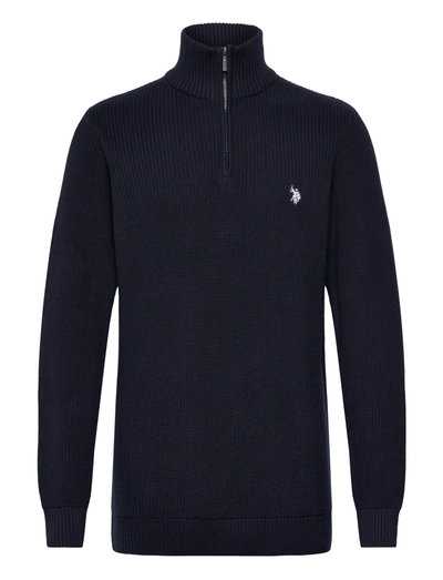 Dieser Strickpullover mit halbem Reissverschluss bietet vielseitige Styling-Optionen. Die gerippte Textur sorgt für Tiefe, während der hohe Kragen zusätzliche Wärme spendet.