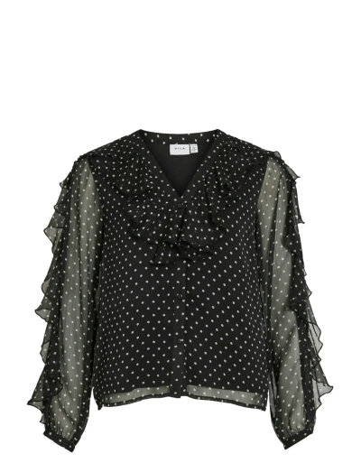Leichter Chiffon verleiht dieser Bluse ein luftiges Tragegefühl. Rüschen sorgen für einen Hauch von Eleganz, während der gebundene Halsausschnitt und die elastischen Bündchen für eine bequeme Passform sorgen. Der Allover-Print vervollständigt den Look.