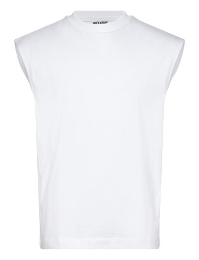 A loose-fit tank top with a square silhouette and pointy shoulders. Crafted from soft cotton, it features a ribbed neckline and a clean hemline. Perfect for layering or wearing solo.