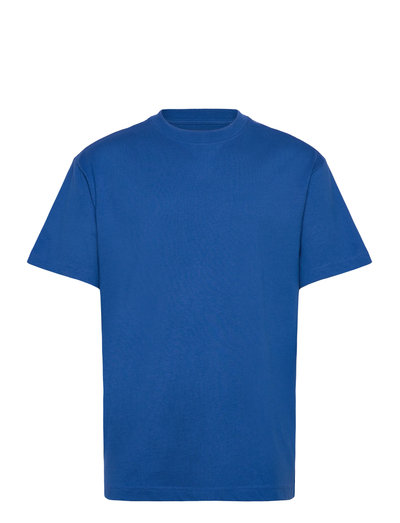 An oversized T-shirt made from a soft heavyweight cotton jersey. It has an extra loose fit with a ribbed crew neck, dropped shoulders, and wide sleeves.