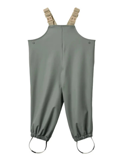 Practical rain overalls in waterproof and durable material for babies. - Adjustable elastic suspenders with stripes and buckles- Press buttons at the waist for adjustments- Elastics at the leg hems- Adjustable rubber straps under the feet- Reflective details Our practical rainwear is an essential part of your childs wardrobe. It is made in a super soft and lightweight material that makes it comfortable for your child to wear and move in. Its waterproof and dirt resistant and is therefore easy to clean with a wet cloth after a muddy afternoon on the playground. The rain overalls have elastic suspenders and press buttons at the waist to ensure a great fit as well as rubber straps under the feet. The overalls have a matching jacket, so you can get the complete rainwear set. ---- Waterproof: 8.000 mm- Welded seams- Water-based PU- Waterproof coil zipper- PFC free- Flourine-free- GRS certified---- Standard 100 by OEKO-TEX®- 55% Post consumer polyester, 45% Water borne polyurethane