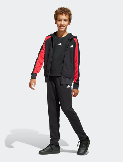 Dieser adidas Sportswear Trainingsanzug ist eine großartige Wahl für Kinder, die gerne aktiv sind. Das Set beinhaltet einen Hoodie mit Reißverschluss und eine passende Hose. Der Hoodie hat eine Kapuze mit Kordelzug und eine Kängurutasche. Die Hose hat einen elastischen Bund und zwei Seitentaschen. Der Trainingsanzug ist aus weichem und bequemem Stoff gefertigt, was ihn perfekt für den täglichen Gebrauch macht.