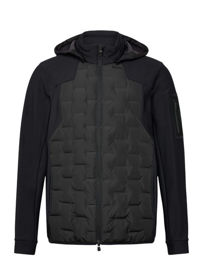 OutdoorDiese Hybridjacke bietet Wärme und Flexibilität mit einer gesteppten Vorderseite und glatten Ärmeln. Das Design verfügt über eine Kapuze für zusätzlichen Schutz vor den Elementen und einen Reißverschluss für einfaches Anziehen. Eine praktische Wahl für Übergangswetter.