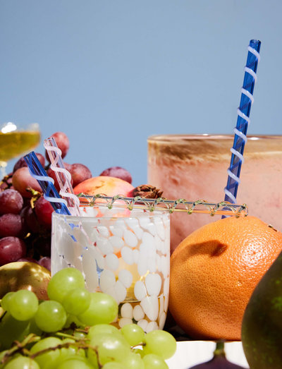 Short straws made of glass with squiggly patterns in different colours. A sustainable alternative when you wish to add an extra party boost to every drinking glass. 4-pack delivered in a Byon box. A perfect little gift. Dishwasher safe.