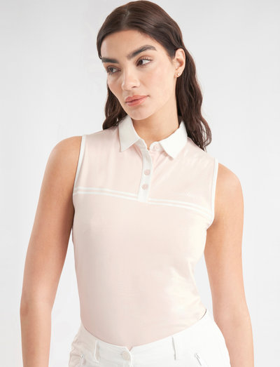 Das BELLEVUE S/LESS POLO ist ein stilvolles und bequemes ärmelloses Poloshirt von Calvin Klein Golf. Es verfügt über einen klassischen Polokragen mit Knopfleiste und einem kontrastierenden weißen Besatz. Das Shirt hat auch ein Calvin Klein-Logo auf der Brust.