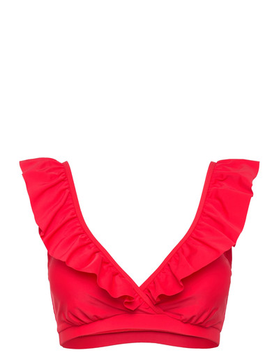 Dieses Bikini-Top wurde für sonnige Tage entworfen und besticht durch einen schmeichelhaften Wickeleffekt und zarte Rüschendetails, die einen Hauch von femininer Eleganz verleihen. Die bequeme und flexible Passform bietet Halt und macht es ideal zum Entspannen und Schwimmen.