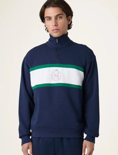 Dieser Sweater mit halbem Reißverschluss besticht durch ein auffälliges Colour-Block-Design und eine entspannte Passform für ultimativen Komfort. Der Frontprint und die Ärmelstickerei setzen unverwechselbare Akzente.