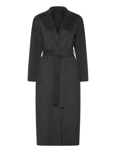 Slim silhouette coat in brushed cashmere wool blend. Stand c ollar, dropped shoulder and belted waist. Unlined with hand- sewn hem.
