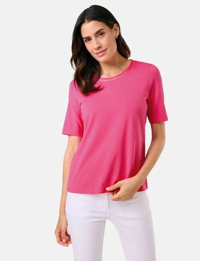 Dieses Gerry Weber T-Shirt ist ein klassisches und vielseitiges Kleidungsstück für jede Garderobe. Es hat eine bequeme Passform und ein schlichtes Design, das sowohl elegant als auch lässig getragen werden kann. Die kurzen Ärmel und der Rundhalsausschnitt machen es perfekt für den Alltag.