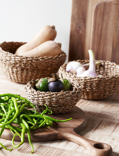 körbe sind eine beliebte und nicht zuletzt stilvolle aufbewahrungslösung. house doctor schenkt ihnen ein set aus drei körben aus seegras in 3 größen. ihr geflochtenes design verleiht ihrer einrichtung eine weiche und natürliche note, egal wo sie sie platzieren. ob sie sie als brotkörbe, zur aufbewahrung kleinerer dinge im flur oder als dekoration im wohnzimmer verwenden, sie bieten eine gute alternative zu aufbewahrungsboxen und anderen materialien.