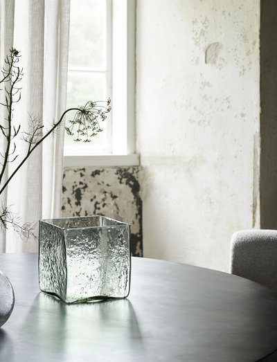 Bring everyday elegance to your home décor with the square glass vase from house doctor. the handmade, square design is finished with a light shade of blue to add a subtle spring colour to your living room. its square shape contrasts the fresh flowers you put in it and gathers them in an elegant way fit for a centrepiece. cut the stems so the flowers reach just above the top of the vase for a contemporary floral arrangement.