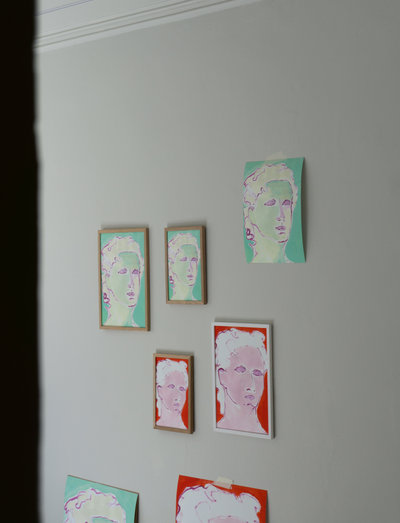 Maria Murphy’s collection of artworks are based on drawings found on ancient Greek and Roman vases. Each character has a personality and a story to tell. Her artworks is characterized by being playful, colourful, expressive and satirical.