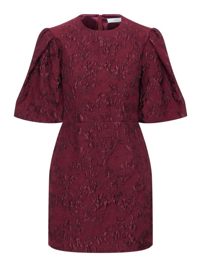 Dieses kurze Kleid aus leichtem Webstoff ist eine bequeme und stilvolle Wahl für Ihr nächstes Event. Die feminine Silhouette und die kurzen Ärmel machen es perfekt für wärmeres Wetter.