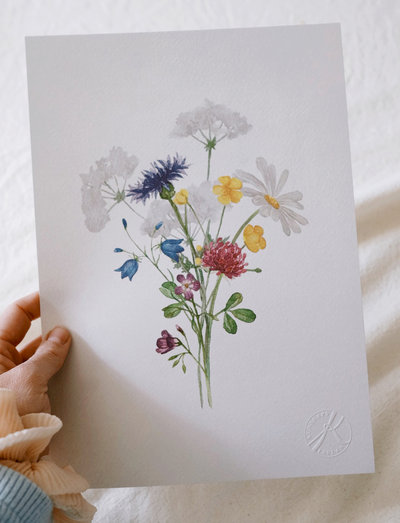 To honor this old mythical ritual we now launch our print Seven flowers. The print illustrates seven flowers commonly found on meadows around Sweden. With this handpainted bouquet of flowers on the wall you will have the feel of summer all year round.
