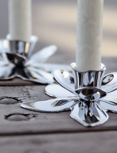 Flower Deco Candleholder. Handcrafted in Chrome. The candleholder comes in an elegant gift box with KunstIndustrien logo.